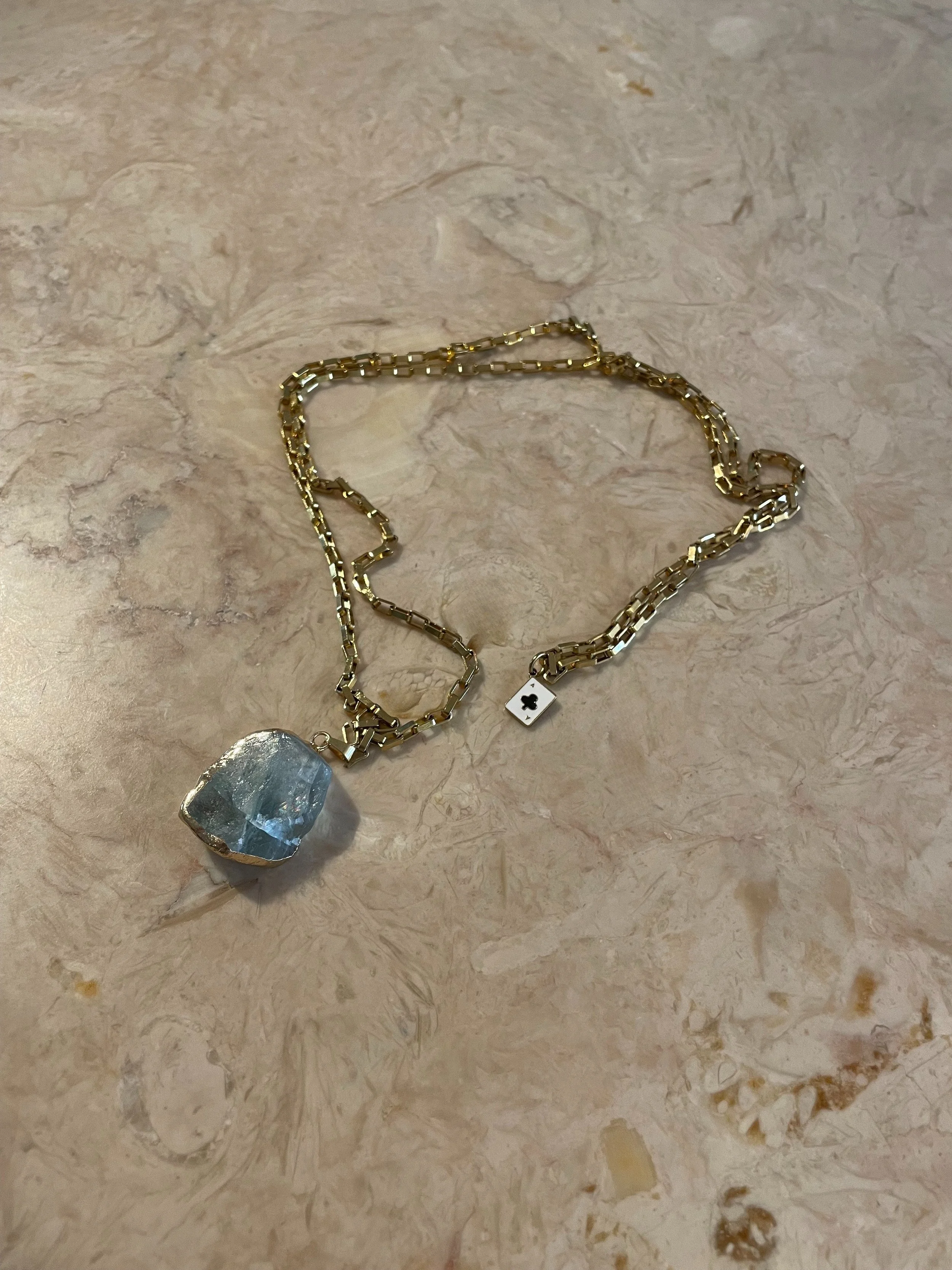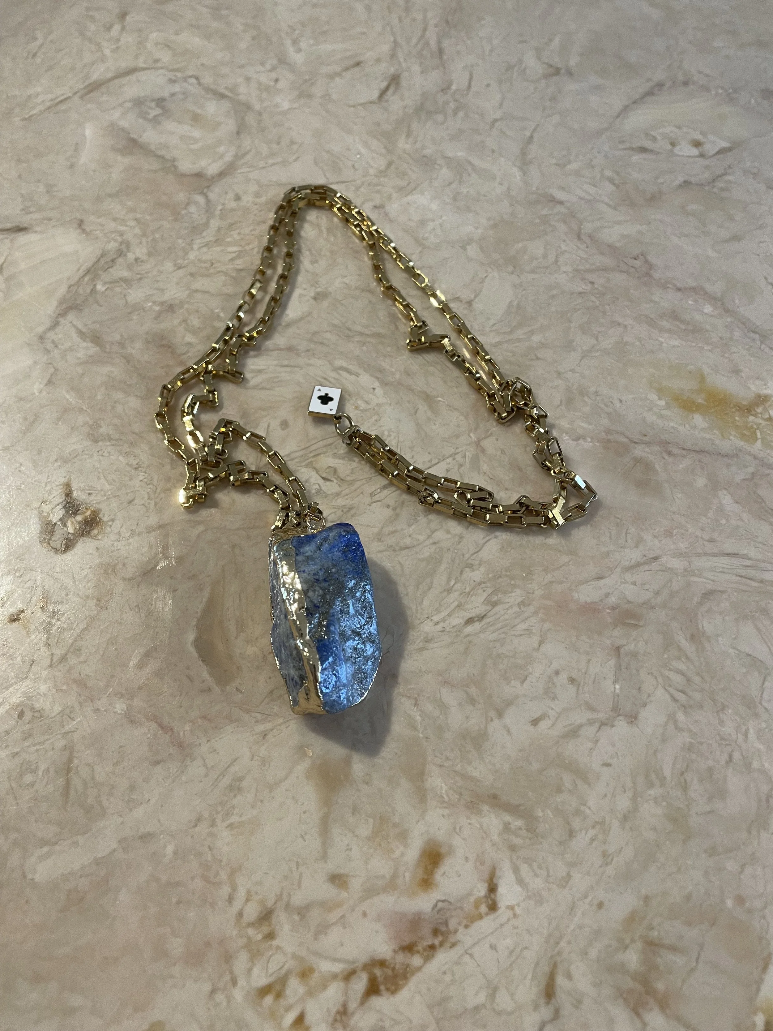Symbole du chakra de la gorge, centre de la communication et de la créativité. La pierre, brute et authentique, reflète la profondeur de l’âme et invite à parler, chanter, et créer depuis le cœur.